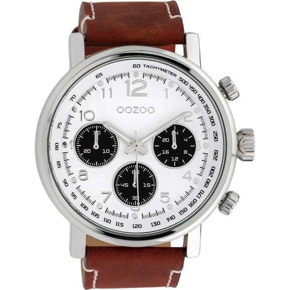 If you like to stand out and be a showstopper, this design C10060 can give you just that. This round gents design from the trendy OOZOO Timepieces collection is a true fashion statement. With its strong leather strap and ø48mm silver metal watch case you will certainly steal the show in every room. The combination of the brown stitched strap and white dial makes this watch an essential piece for your wardrobe. The dial has silver-black numbers digits and silver-white hands. This watch has a 2ATM waterproof rating and a Japanese movement movement. All watches are nickel safe and are executed with a stainless steel backplate.
