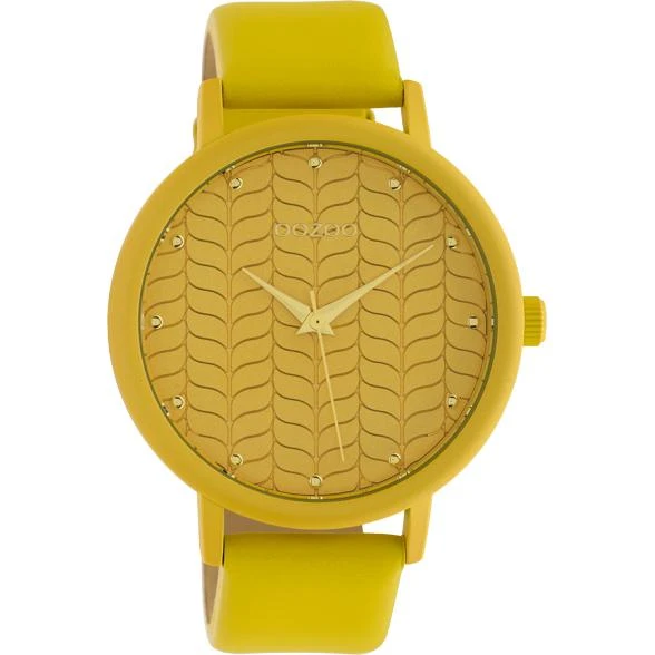 Celebrate every moment at home or out with the C10655 from the OOZOO Timepieces collection. Trust this beautiful ladies design with 45mm round mustard metal watch case. This watch has a mustard leather strap. Make a true fashion statement with this mustard leaf pattern dial, gold dots and matching hands. This watch has an 2ATM Japanese movement. The watch is nickel-safe and is equipped with a stainless steel back plate.