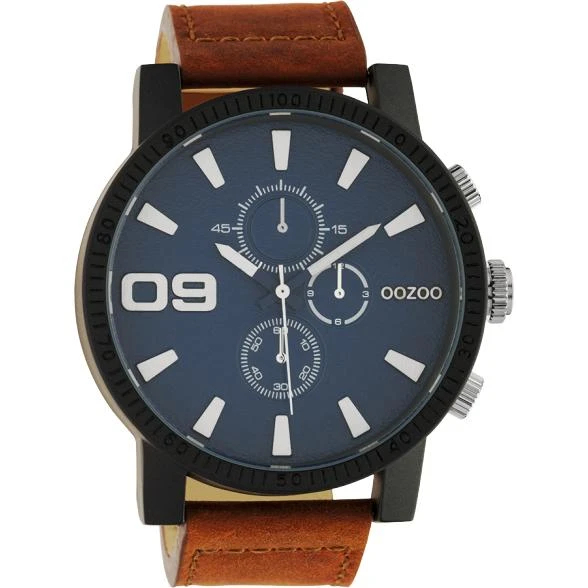 Celebrate every moment at home or out with the C10672 from the OOZOO Timepieces collection. Trust this beautiful unisex design with 50mm round black metal watch case. This watch has a brown stitched leather strap. Make a true fashion statement with this blue grind dial, silver stripes and matching hands. This watch has an 2ATM Japanese movement. The watch is nickel-safe and is equipped with a stainless steel back plate.
