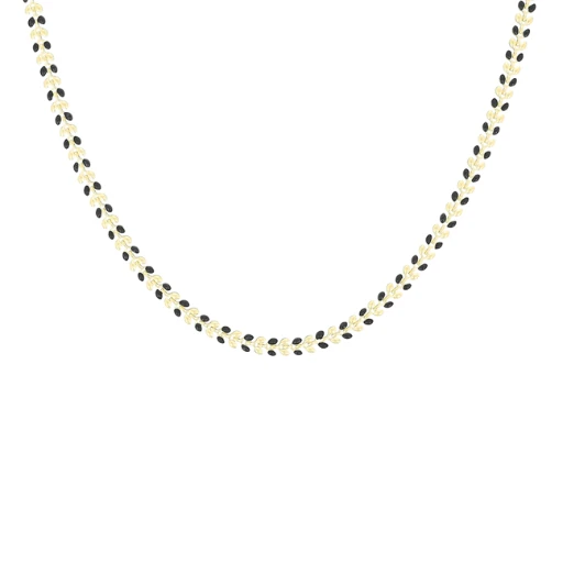 OOZOO Jewellery is a great addition to your personal accessories collection. This beautiful gold & black necklace with leaves is the perfect ladies accessory to complete your outfit. The necklace is 40.5cm long and is 5cm adjustable. This amazing piece is made of strong stainless steel with gold & black plated PVD and therefore is long-lasting. This material ensures you that your jewellery retains its beautiful colour. This product (SN-2057) is covered by a 3 month warranty.