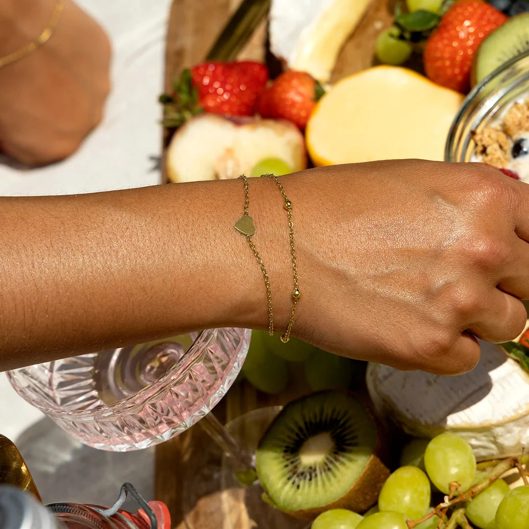 OOZOO Jewellery is a great addition to your personal accessories collection. This beautiful gold coloured bracelet with a heart is the perfect ladies accessory to complete your outfit. The bracelet is 17 cm long and is 3 cm adjustable. This amazing piece is made of strong stainless steel with gold coloured plated PVD and therefore long-lasting. This material ensures you that your jewellery retains its beautiful colour. This product (SB-1040) is covered by a 3 month warranty.