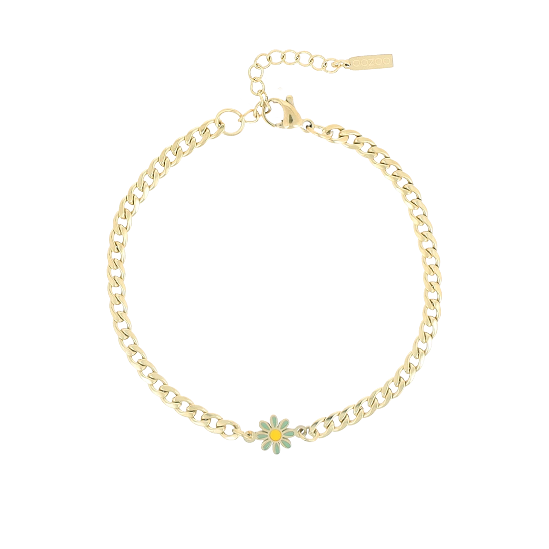OOZOO Jewellery is a great addition to your personal accessories collection. This beautiful gold coloured bracelet with flower charm is the perfect ladies accessory to complete your outfit. The bracelet is 17 cm long and is 3 cm adjustable. This amazing piece is made of strong stainless steel with gold coloured plated PVD and therefore long-lasting. This material ensures you that your jewellery retains its beautiful color.