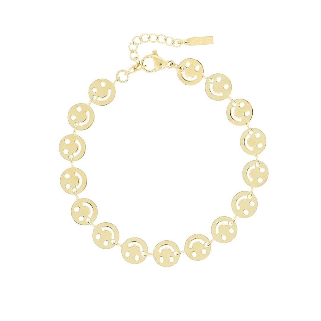 OOZOO Jewellery is a great addition to your personal accessories collection. This beautiful gold coloured bracelet with smileys is the perfect ladies accessory to complete your outfit. The bracelet is 17 cm long and is 3 cm adjustable. This amazing piece is made of strong stainless steel with gold coloured plated PVD and therefore long-lasting. This material ensures you that your jewellery retains its beautiful color.ย