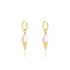 Introducing OOZOO Jewellery Earrings, the perfect accessories to add a touch of elegance and style to any outfit. These gold coloured hoop earrings are designed specifically for those who appreciate sophisticated and timeless jewellery. Crafted with high-quality stainless steel, these 30mm hoop earrings offer durability and long-lasting beauty. These hoop earrings are adorned with ice cream charm (20mm) to add a touch of whimsy and fun to the overall look. This product (SE-3081) is covered by a 3 month warranty.