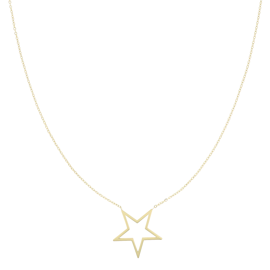 OOZOO Jewellery is a great addition to your personal accessories collection. This beautiful gold coloured necklace with big star is the perfect ladies accessory to complete your outfit. The necklace is 44 cm long and is 8 cm adjustable. This amazing piece is made of strong stainless steel with gold coloured plated PVD and therefore long-lasting. This material ensures you that your jewellery retains its beautiful color.ย