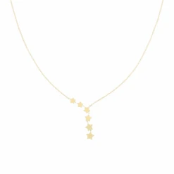 OOZOO Jewellery is a great addition to your personal accessories collection. This beautiful gold necklace with stars is the perfect ladies accessory to complete your outfit. The necklace is 41cm long and is 5cm adjustable. This amazing piece is made of strong stainless steel with gold plated PVD and therefore is long-lasting. This material ensures you that your jewellery retains its beautiful colour. This product (SN-2058) is covered by a 3 month warranty.