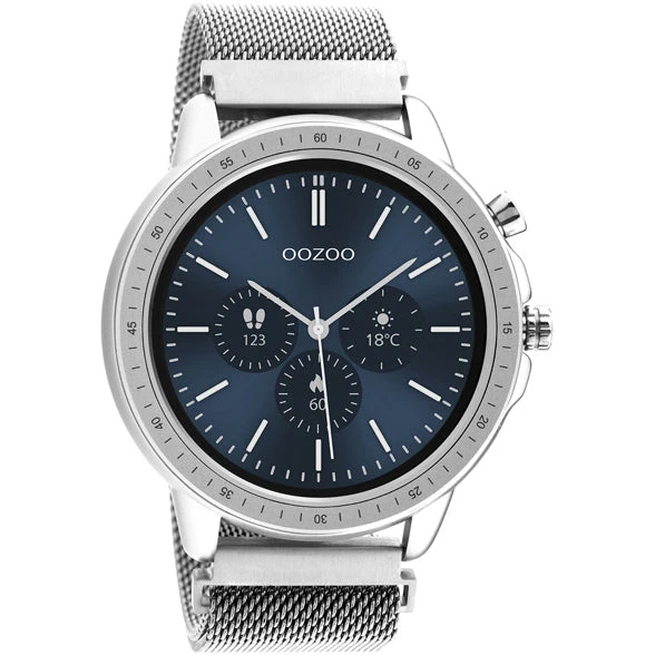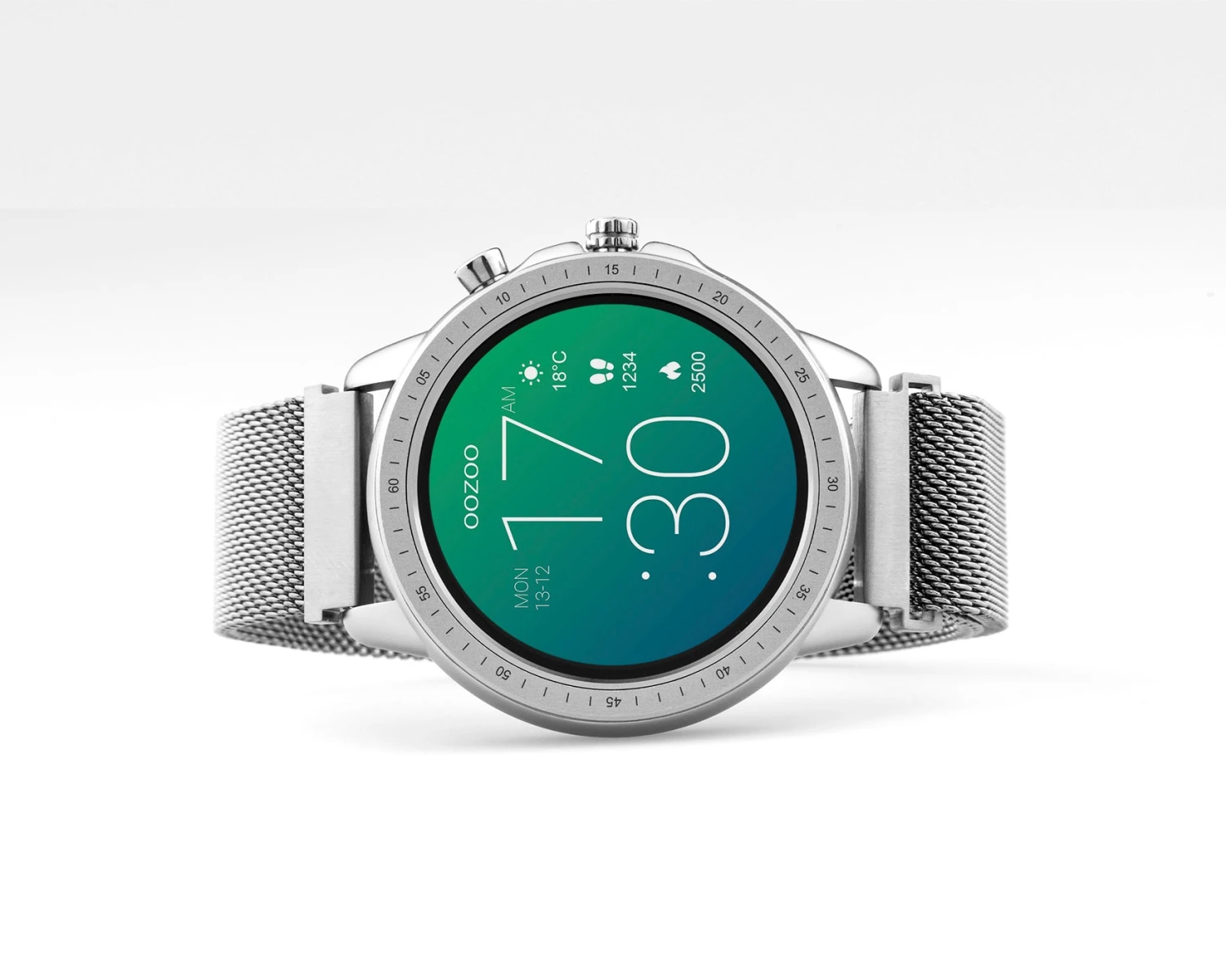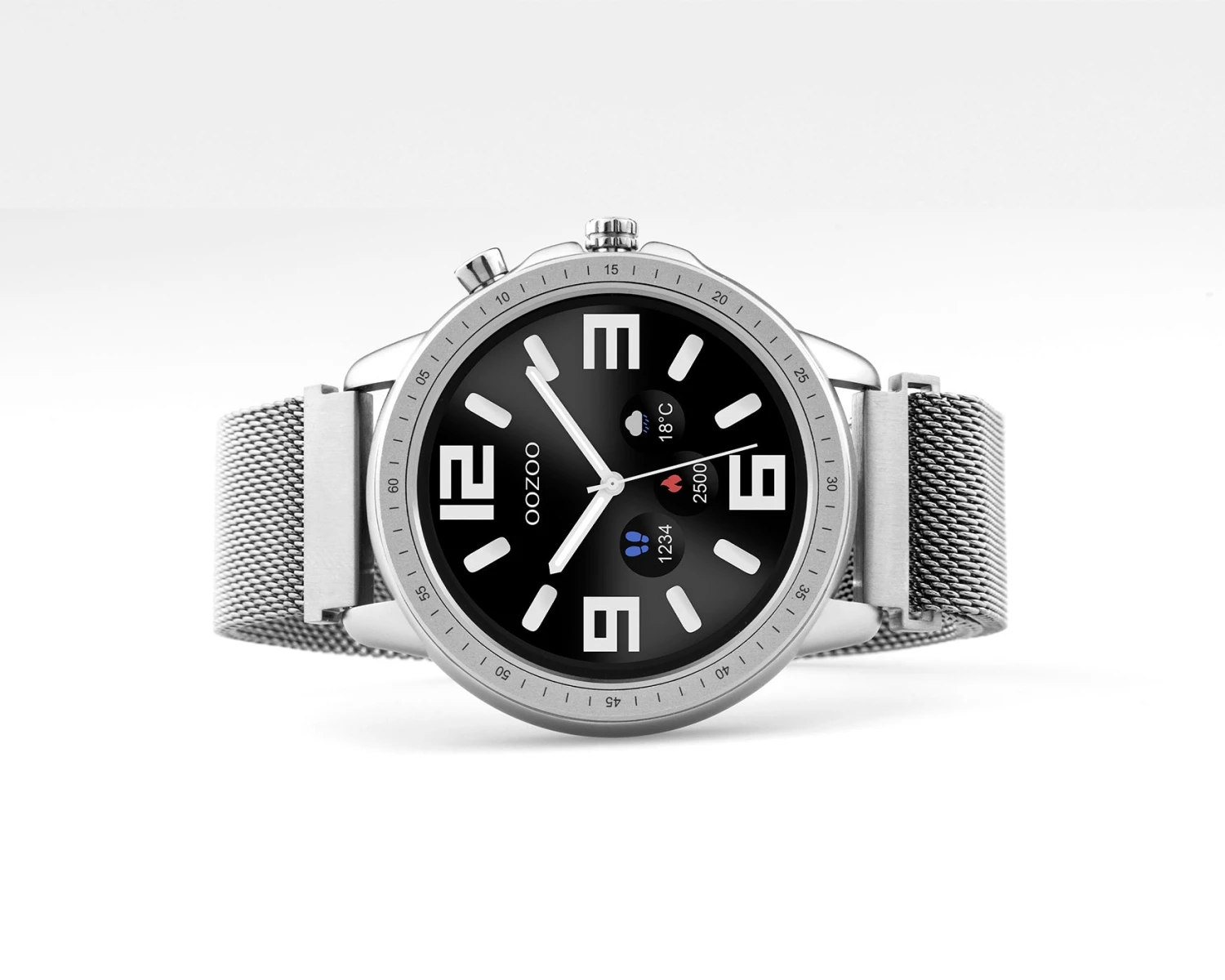 The Q305 with a round design from the OOZOO Smartwatches collection is unisex and the smart solution for everyone. This watch is a unique fashion statement with its strong silver metal mesh strap with magnetic finish. This smartwatch has a ø45mm silver metal watch case. The smartwatch has different original OOZOO dials to choose. This watch is IP67 certified and nickel safe.