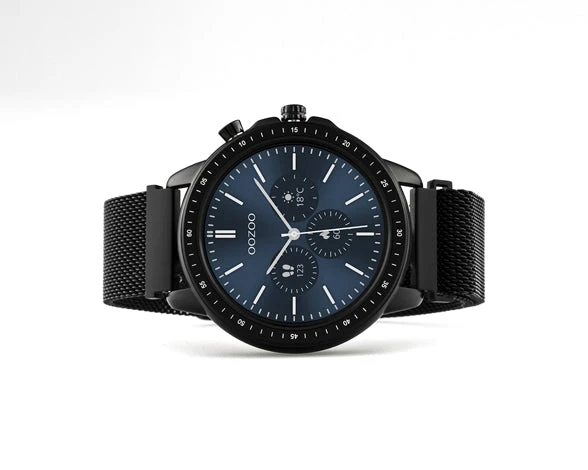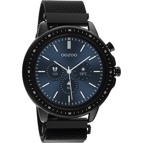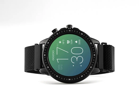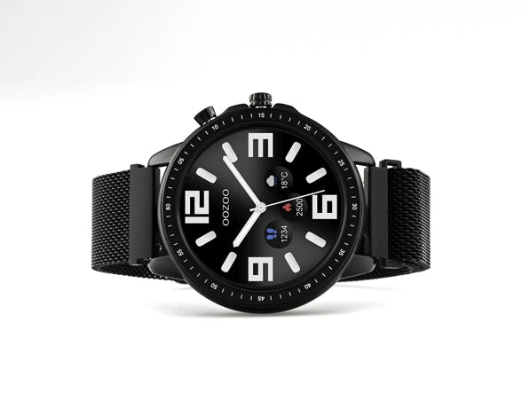 The Q309 with a round design from the OOZOO Smartwatches collection is unisex and the smart solution for everyone. This watch is a unique fashion statement with its strong black metal mesh strap with magnetic finish. This smartwatch has a ø45mm black metal watch case. The smartwatch has different original OOZOO dials to choose. This watch is IP67 certified and nickel safe.