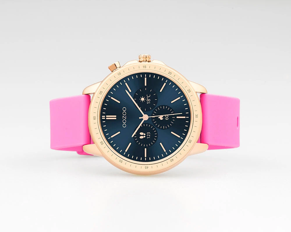 The Q325 with a round design from the OOZOO Smartwatches collection is unisex and the smart solution for everyone. This watch is a unique fashion statement with its strong black rubber strap with mat finish. This smartwatch has a ø45mm silver metal watch case. The smartwatch has different original OOZOO dials to choose. This watch is IP67 certified and nickel safe.