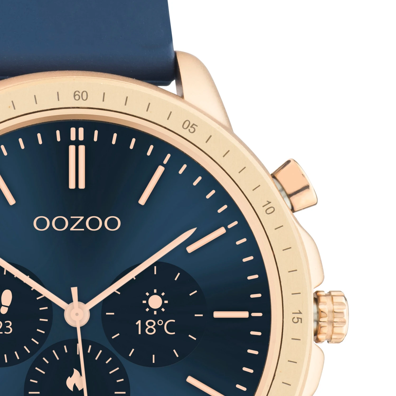 The Q326 with a round design from the OOZOO Smartwatches collection is unisex and the smart solution for everyone. This watch is a unique fashion statement with its strong black rubber strap with mat finish. This smartwatch has a ø45mm silver metal watch case. The smartwatch has different original OOZOO dials to choose. This watch is IP67 certified and nickel safe.