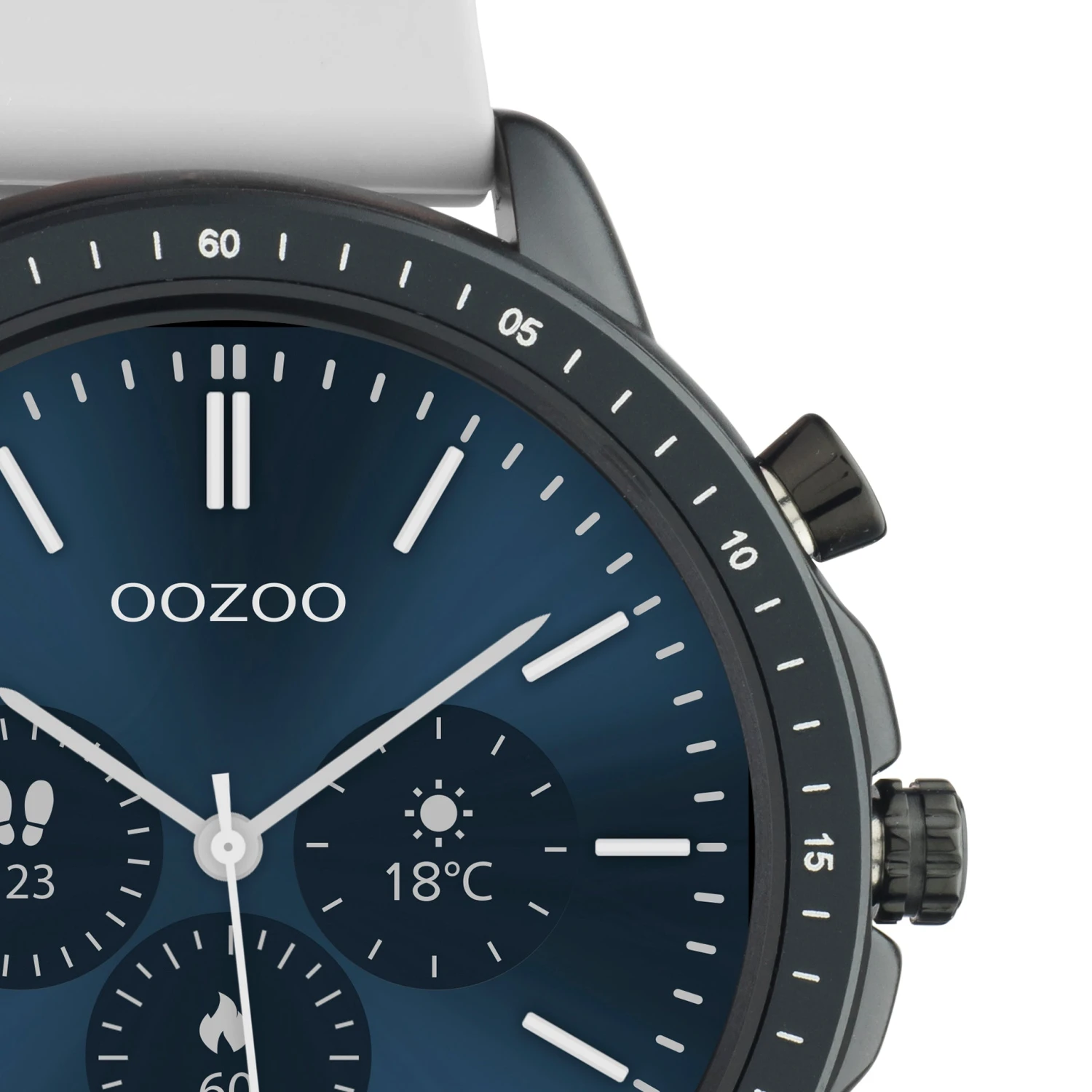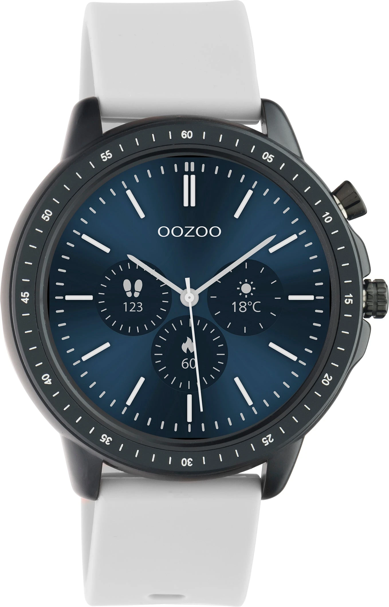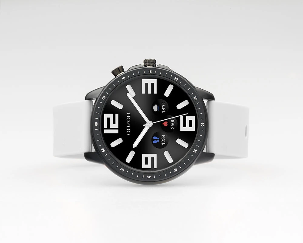 The Q328 with a round design from the OOZOO Smartwatches collection is unisex and the smart solution for everyone. This watch is a unique fashion statement with its strong black rubber strap with mat finish. This smartwatch has a รธ45mm silver metal watch case. The smartwatch has different original OOZOO dials to choose. This watch is IP67 certified and nickel safe.
