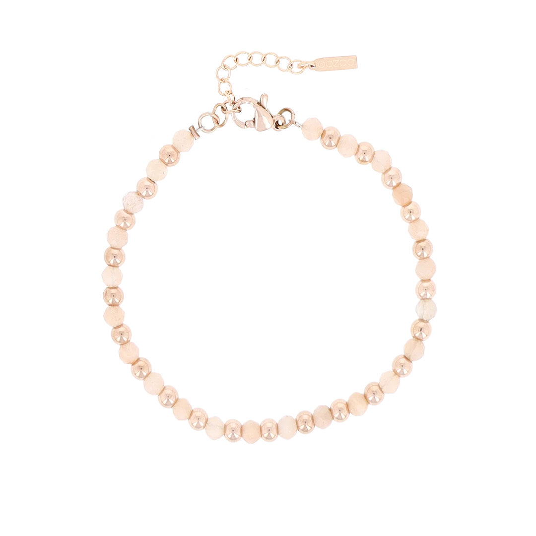 OOZOO Jewellery is a great addition to your personal accessories collection. This beautiful rose coloured bracelet with pink natural stones is the perfect ladies accessory to complete your outfit. The bracelet is 17 cm long and is 3 cm adjustable. This amazing piece is made of strong stainless steel with rose coloured plated PVD and therefore long-lasting. This material ensures you that your jewellery retains its beautiful color.