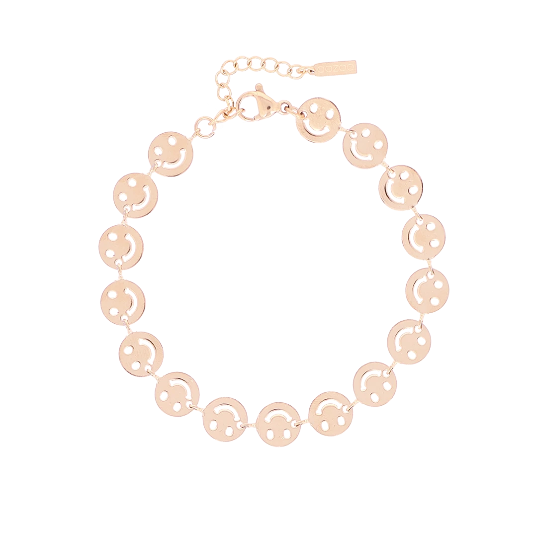 OOZOO Jewellery is a great addition to your personal accessories collection. This beautiful rose coloured bracelet with smileys is the perfect ladies accessory to complete your outfit. The bracelet is 17 cm long and is 3 cm adjustable. This amazing piece is made of strong stainless steel with rose coloured plated PVD and therefore long-lasting. This material ensures you that your jewellery retains its beautiful color.