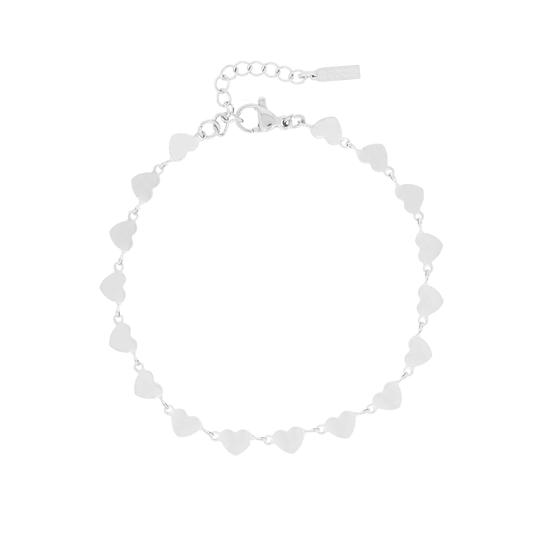 OOZOO Jewellery is a great addition to your personal accessories collection. This beautiful silver coloured bracelet with hearts is the perfect ladies accessory to complete your outfit. The bracelet is 17 cm long and is 3 cm adjustable. This amazing piece is made of strong stainless steel with silver coloured plated PVD and therefore long-lasting. This material ensures you that your jewellery retains its beautiful color.ย